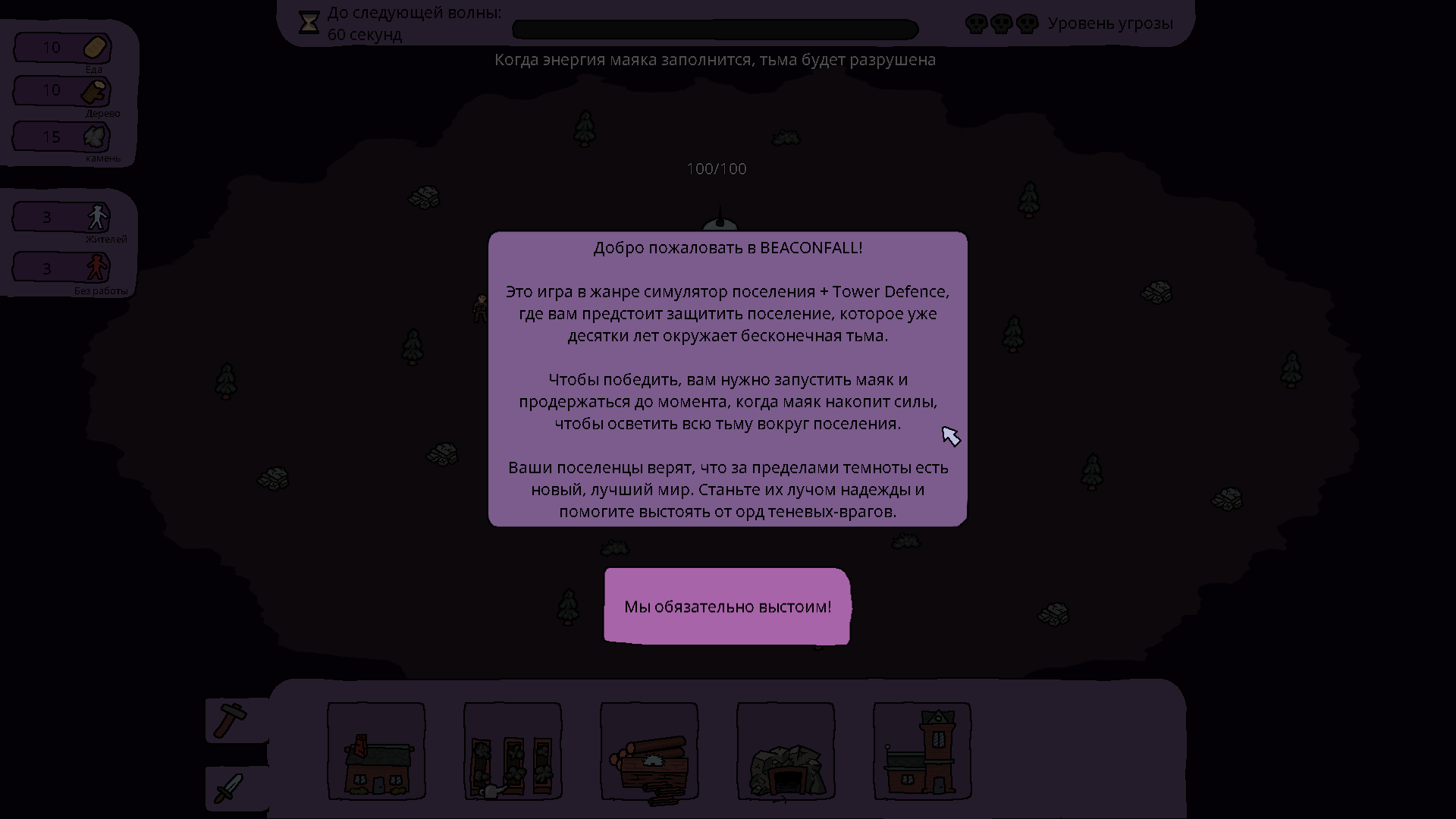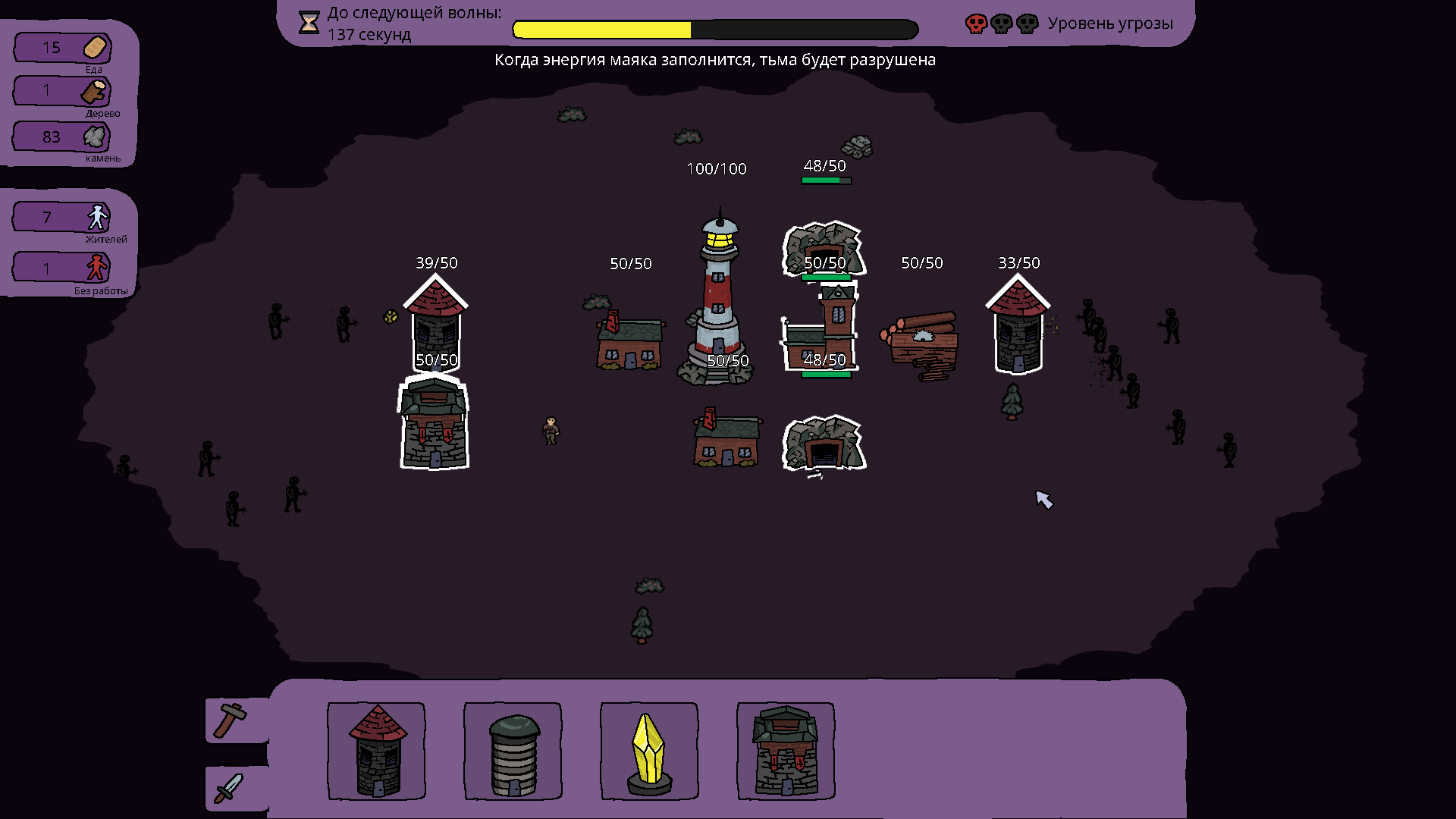 Главная задача игры - построить маяк, который будет способом пробить купол